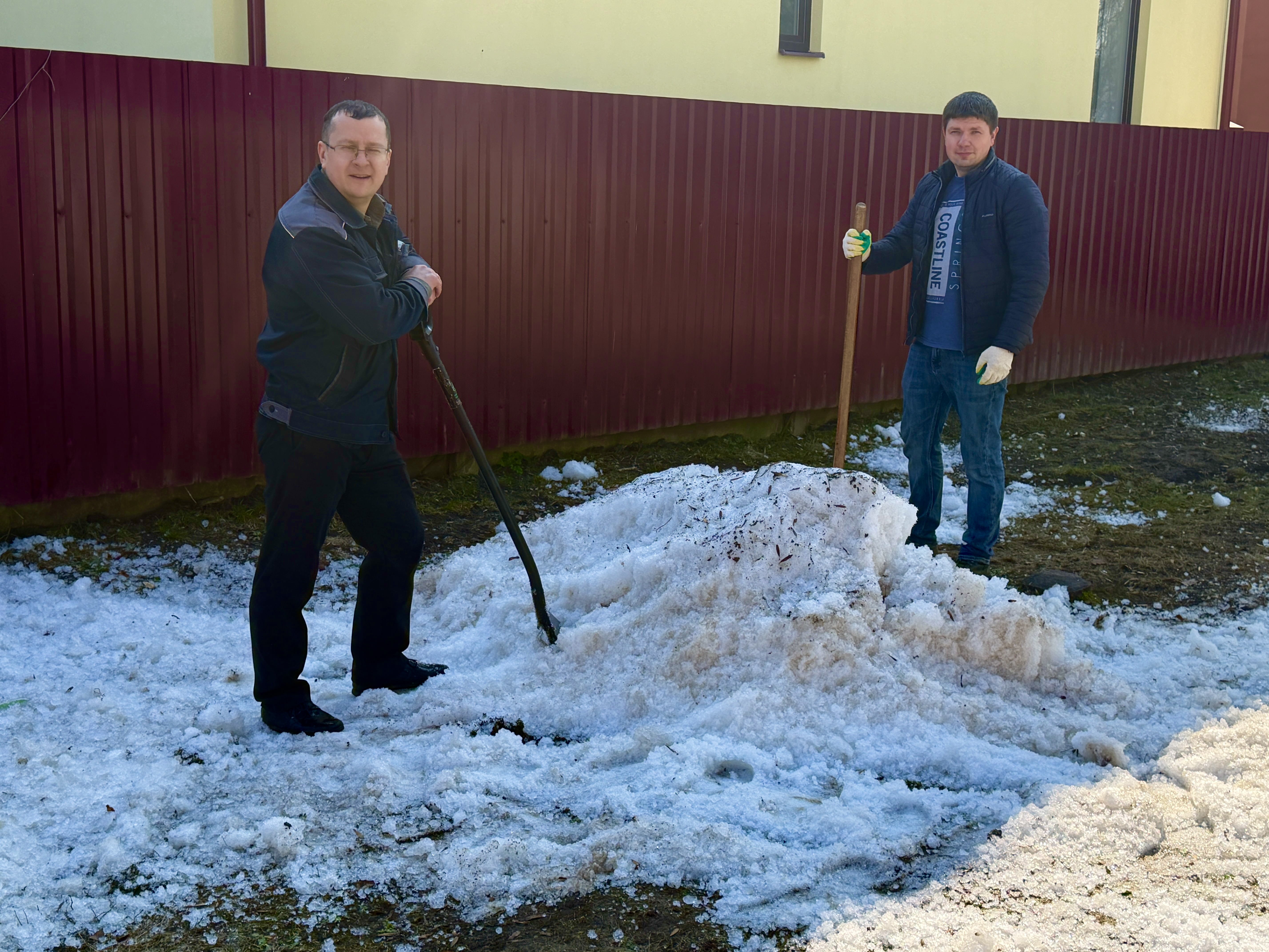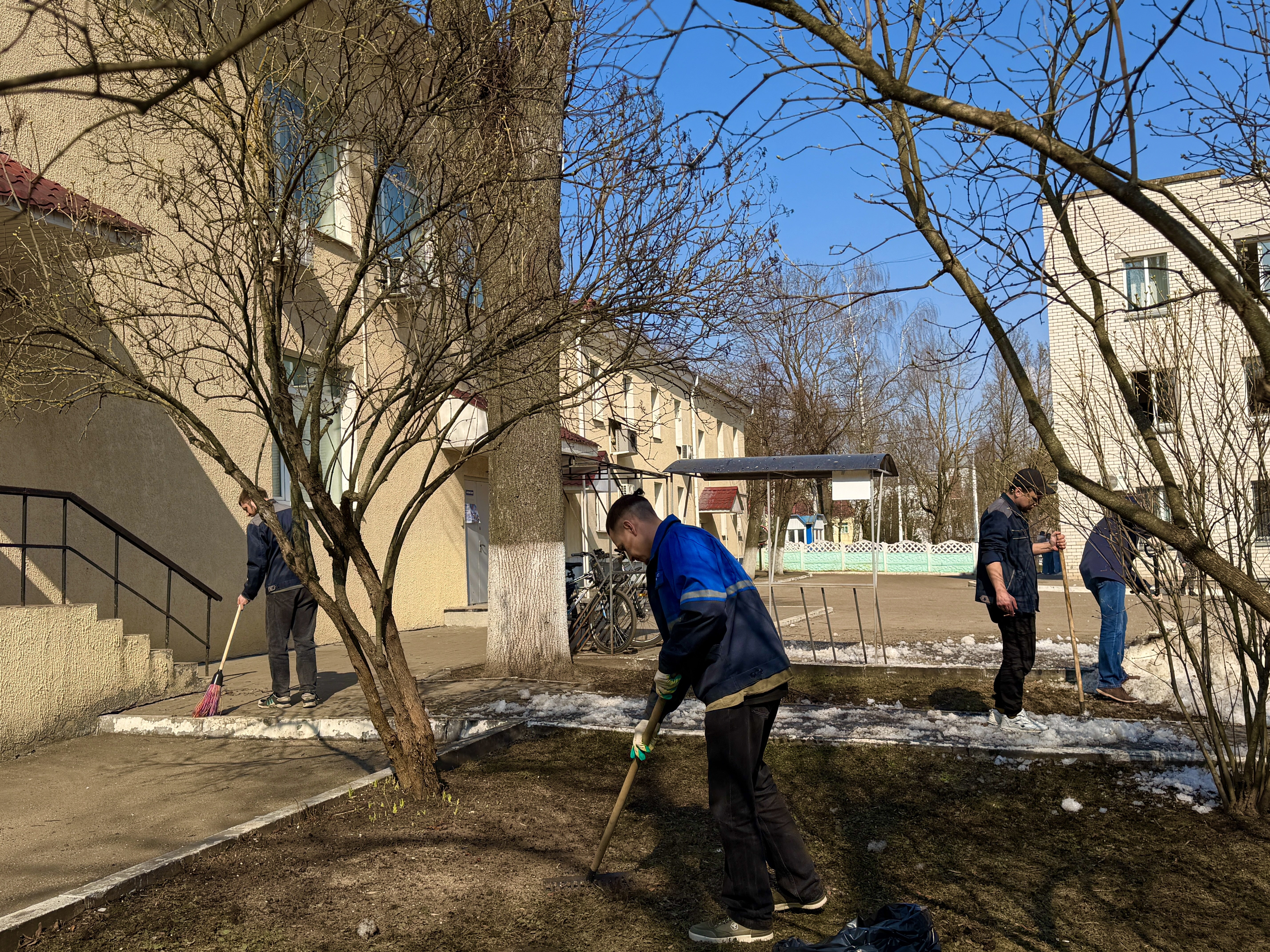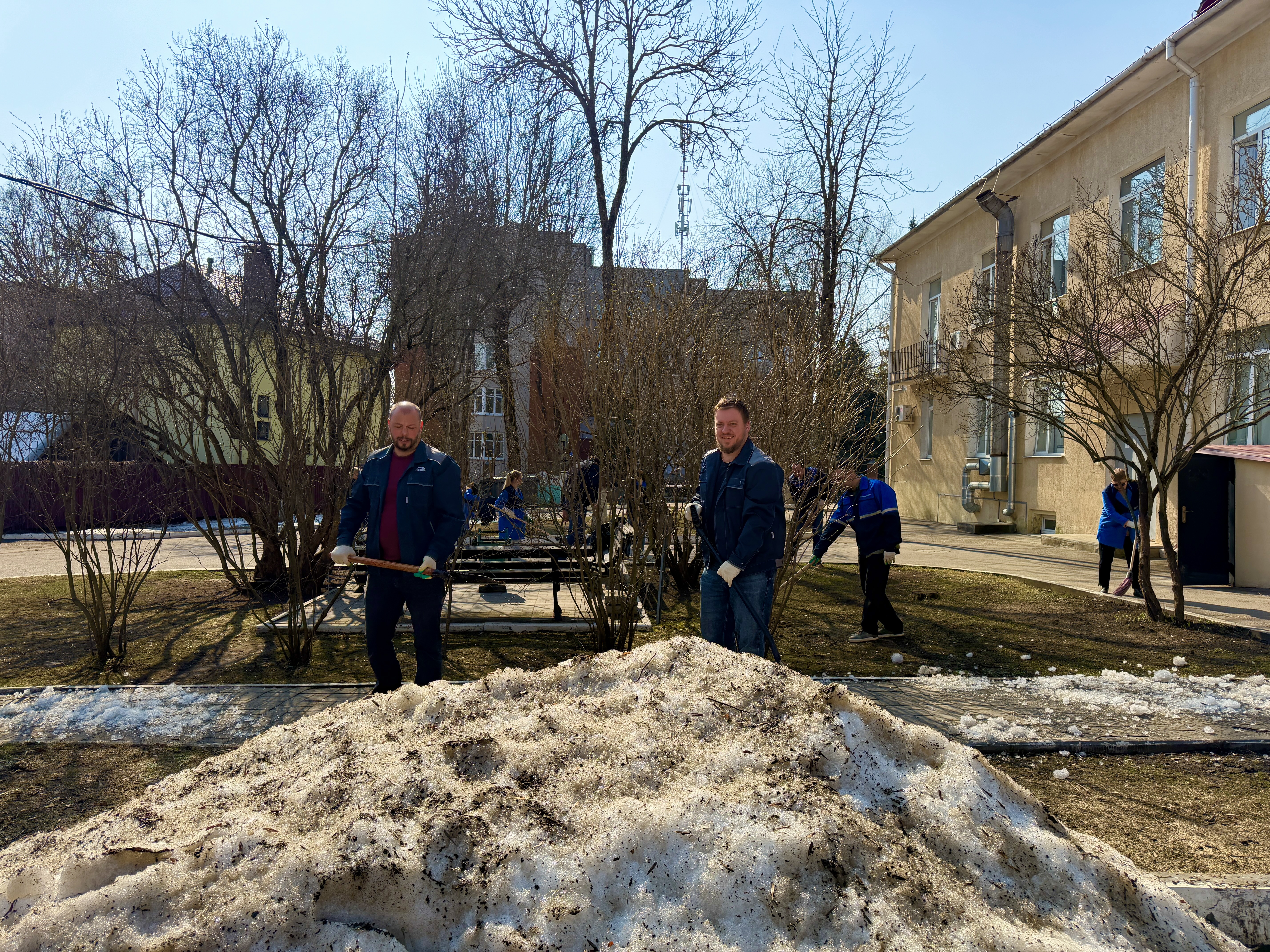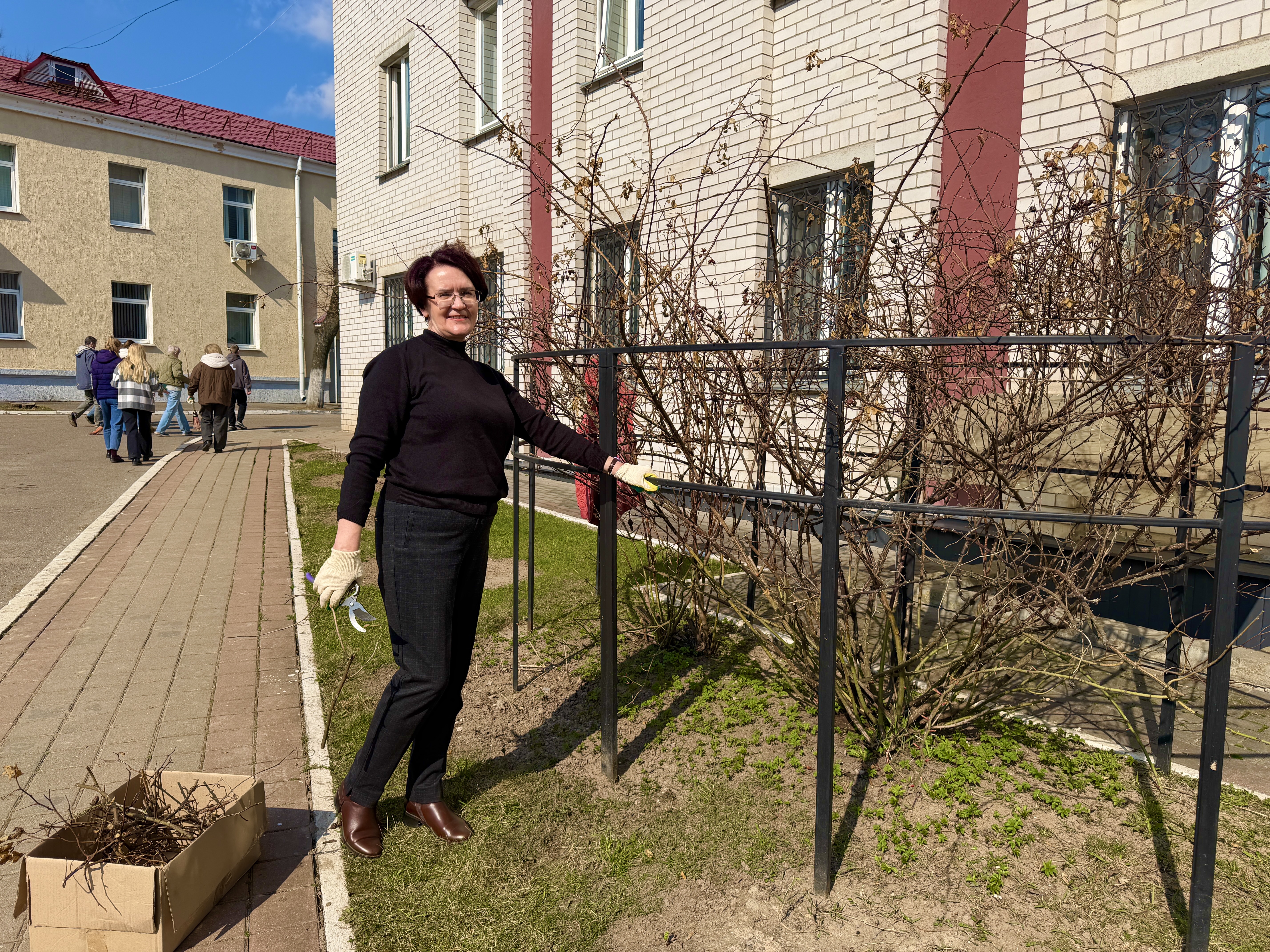Работники с энтузиазмом вышли на активную работу по наведению порядка на территории, прилегающей к зданию центра.