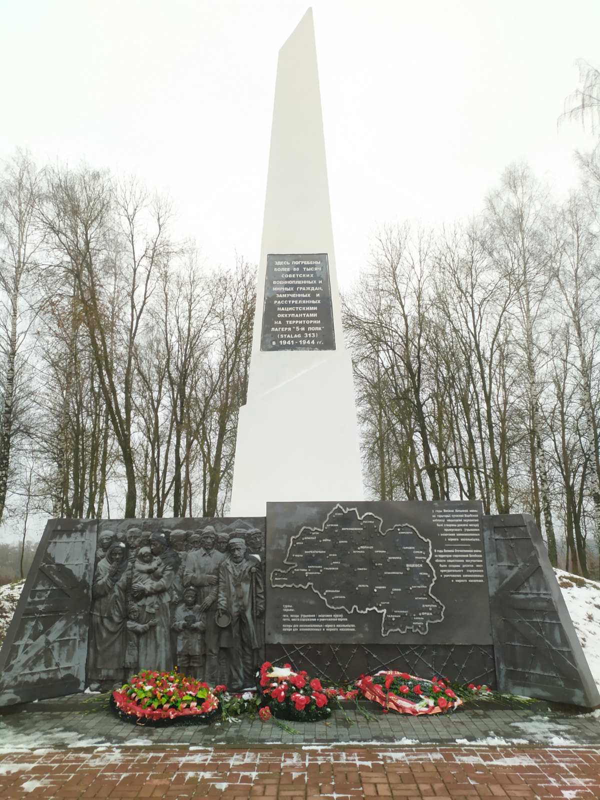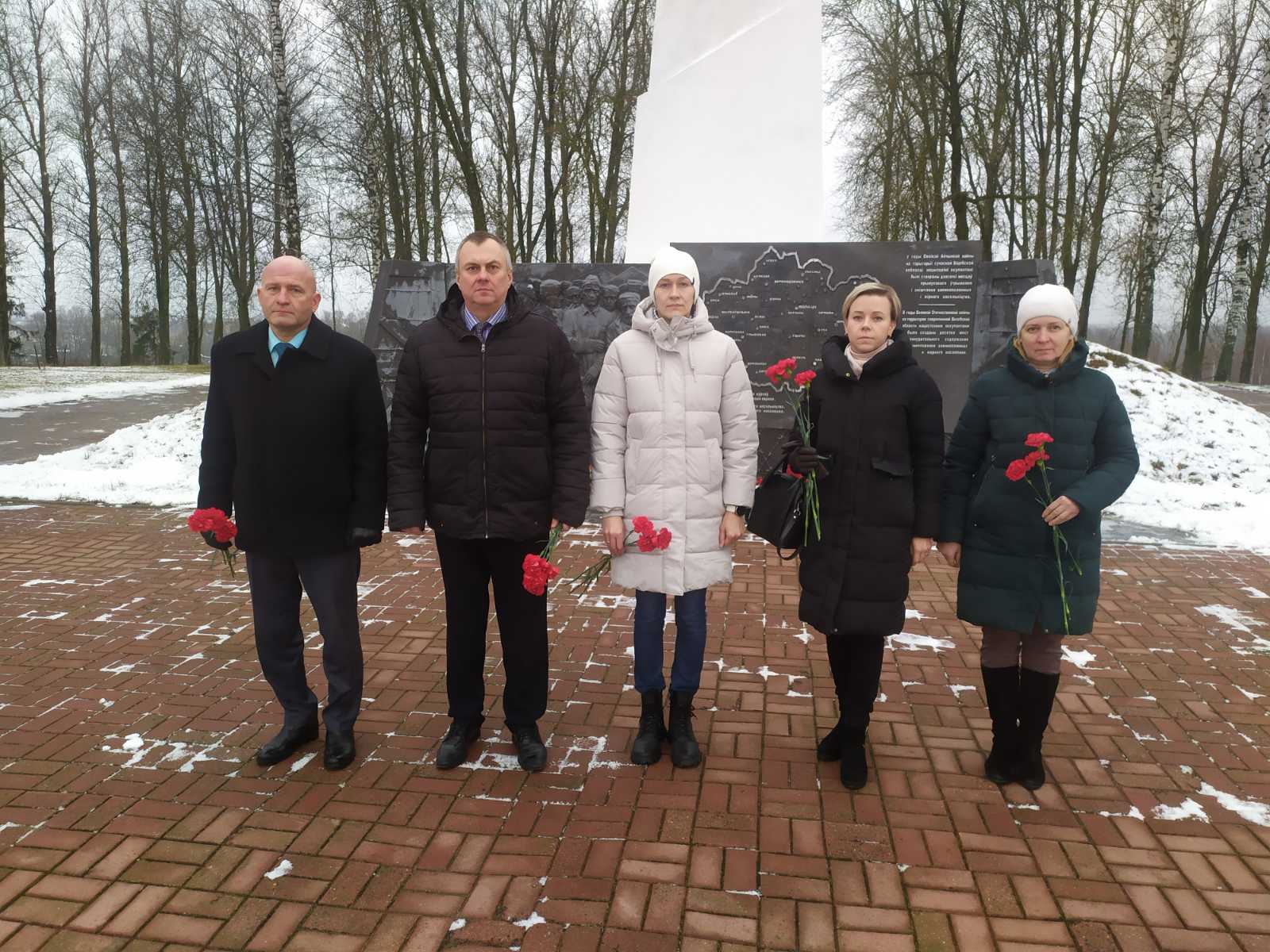Сотрудники центра и Витебской областной инспекции Госстандарта во главе с заместителем директора Тихенко Игорем Анатольевичем возложили цветы к памятному знаку узникам концлагерей обелиску на месте лагеря смерти «5-й полк».