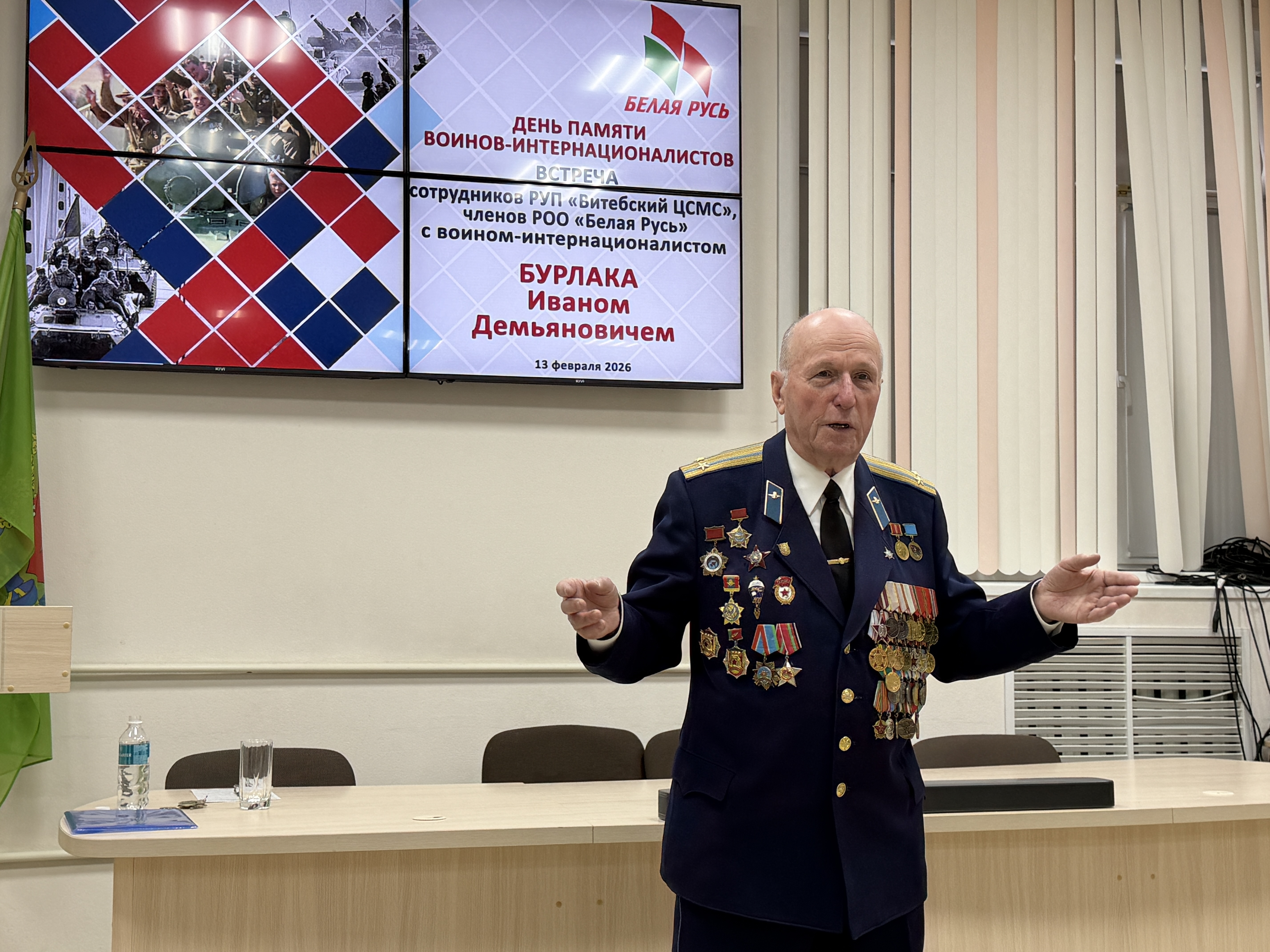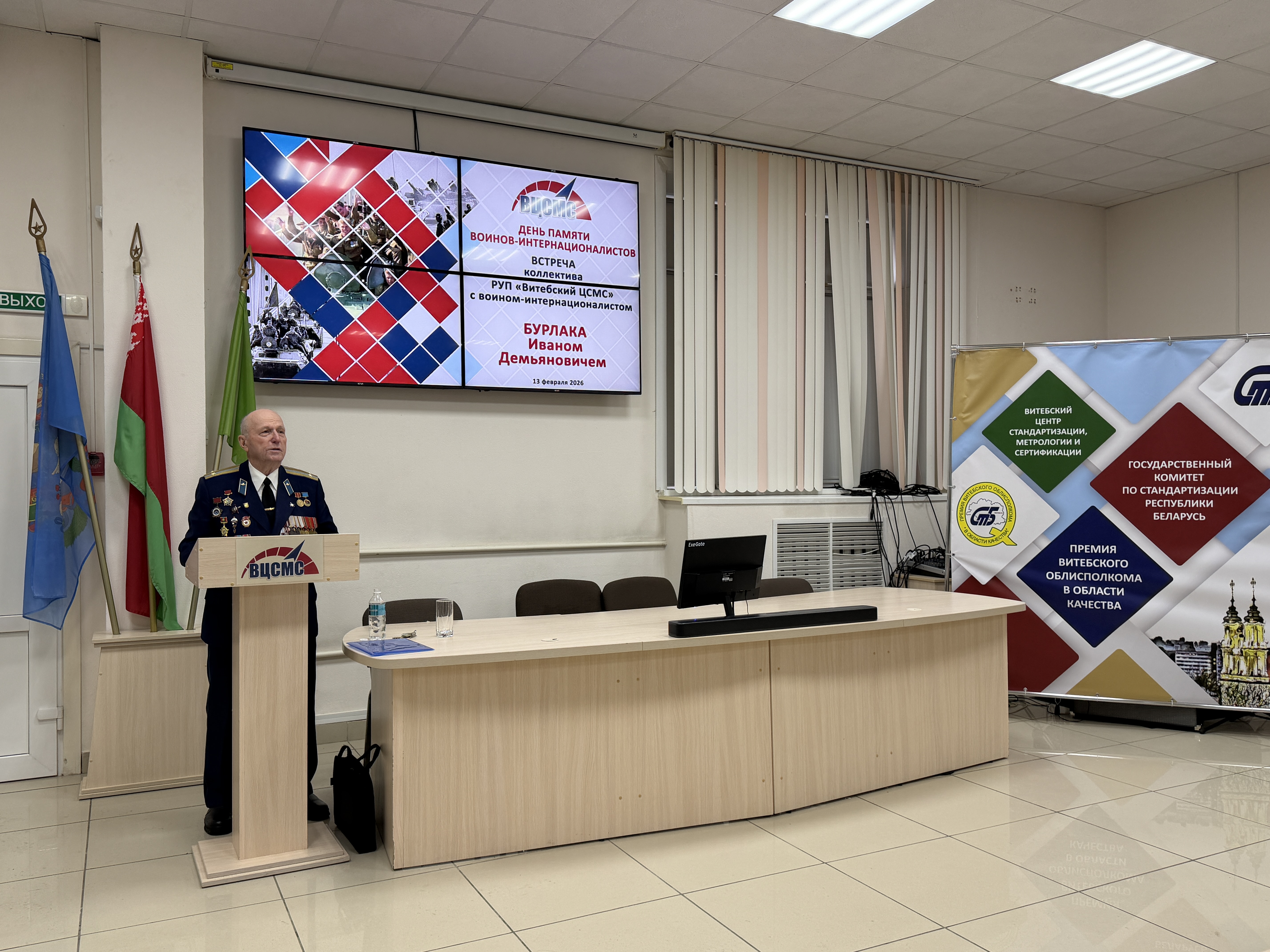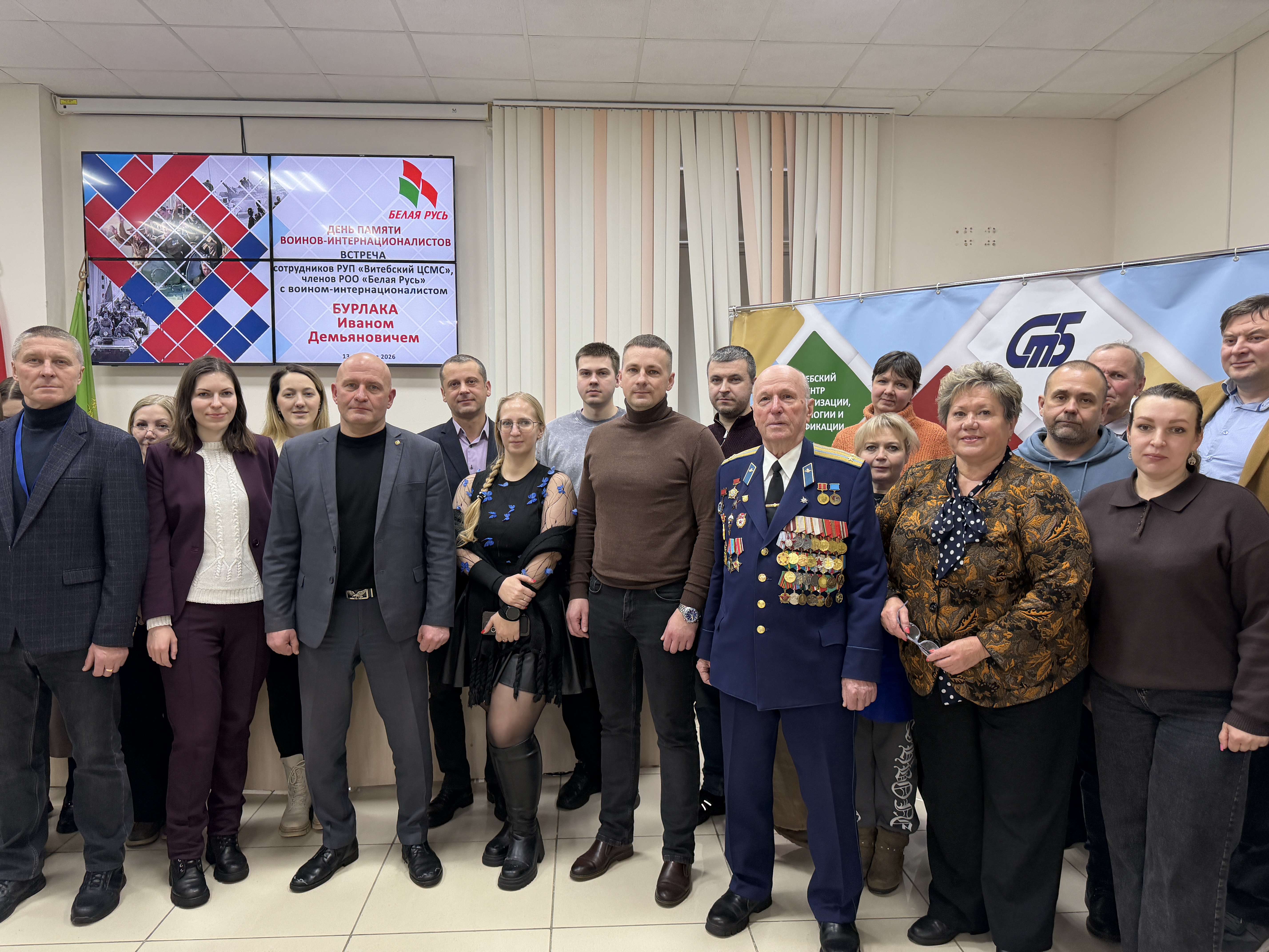 Перед коллективом РУП «Витебский ЦСМС» выступил Иван Демьянович Бурлака, гвардии подполковник в отставке, ветеран 103-й Витебской ГВДД, которая вошла в Афганистан в числе первых подразделений 40-й армии в конце декабря 1979 года и покинула эту страну 15 февраля 1989 г..