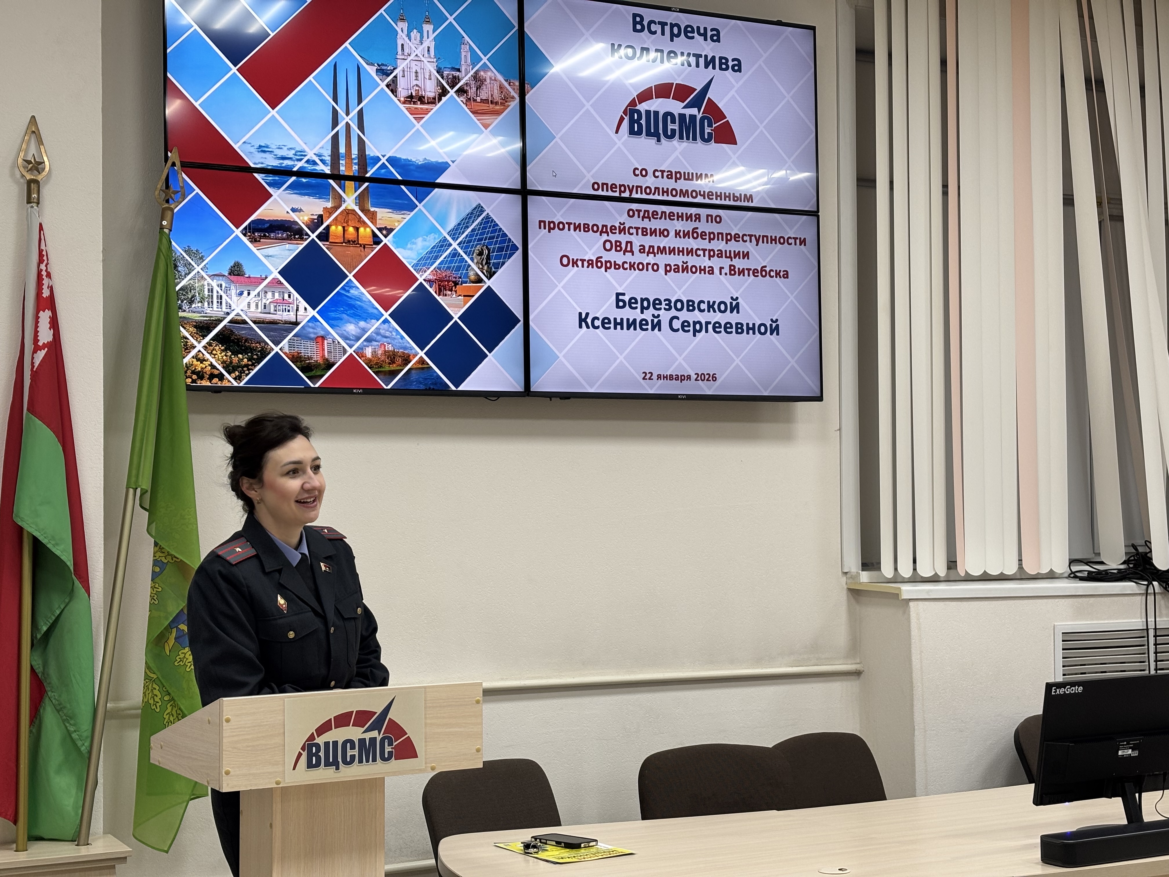 22 января 2026 г. в рамках правового просвещения состоялась встреча трудового коллектива РУП «Витебский ЦСМС» со старшим оперуполномоченным отделения по противодействию киберпреступности ОВД администрации Октябрьского района г.Витебска Ксенией Березовской.